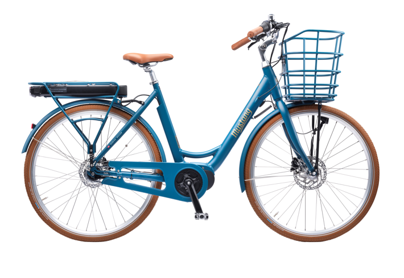 Cyklen kommer med integreret for- og baglygte, som kører på cyklens batteri, samt en rummelig indfarvet cykelkurv.